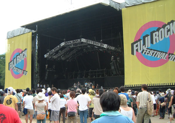終わってしばし自分のシートに戻り休憩。少しのつもりが、グリーンステージのJuno Reactorの音を聴きながら眠ってしまう。Juno Reactorは眠りながら聴いたので「なんだかテクノだなぁ」という素朴でちょっと間抜けな感想しか出てこない。ホットハウスフラワーズのときはピザとか食いに行ってたが、結局起きたのは3時をかなり過ぎた頃。すっかり寝込んでしまった。何しに来たんだろうかとも一瞬思ったが、今日はニールとモグワイだけ観 それにしても、昨日にも増して会場内の砂ぼこりがひどい。通路はもうもうに舞い上がってるので、口にタオルをあてて歩いている人も多い。水撒きとかやってくれればいいのにな。でも、トイレの水もだんだん出なくなってきてるし、水の貴重さがわかるってもの。水が出ないのってつらいものだ。 途中、ひこうきぐもの掲示板に去年くらいまでよく書いてくれていた、ゴッドねえさんに偶然会う。この春から仕事の都合などで、中国は上海にお住まいのゴッドねえさんだが、このフジロックを観る為にわざわざ来日。ほとんど出演者並だ。ぼくより年上であるにもかかわらず、行動力は何倍も上。ぼくがシートで寝ているような間に、精力的に動き回っていた様子。一体どこにあんなパワーが潜んでいるのだろうか。ぼくが体力がないだけかもしれないが。ちなみにゴッドねえさんには、過去に99年のフジロック日記を、無理言って書いて頂いたことがある。感謝。(今も上のメニューから見れます)