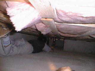 で、基礎の中に設けられた点検口から入ってみたのですが・・・。