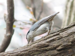 北海道の亜種はシロハラゴジュウカラと言って、お腹が白いのだがよく分かるでしょう。お腹の白さと背中の青灰色が綺麗だと思う。この鳥は何故か木の幹を逆さに降りてきたりするんだな。ピンぼけだけど顔の見える方の写真はこちら。目の所にラインが入っております。円山には沢山いるらしい。