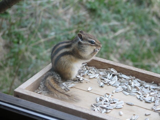 さっさと下りに入って、今度は八十八カ所の側を降りていく。円山は双子山とも呼んでいたが、双子の稜線を降りる方だ。だから降りているのにちょっと登りもある。こちらの側にも餌台があってシマリスに出会う。さっきの餌台でもシマリスはいたのだけどね。