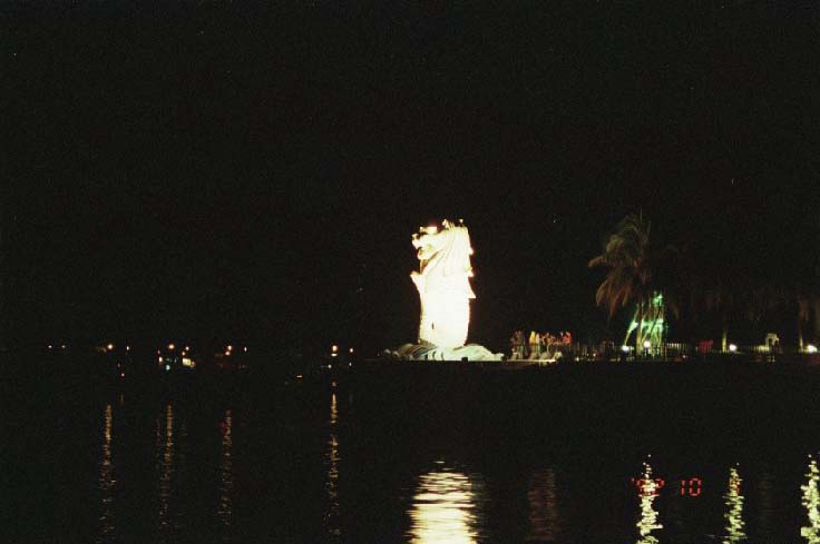 シンガポールといえば、「これ」でしょう。 マーライオン(ライトアップ!!) 一眼レフ持ってて良かった。ばかちょんじゃ撮影不可だもん♪ 我が家にマーライオンの置物があるのは内緒です。(爆)