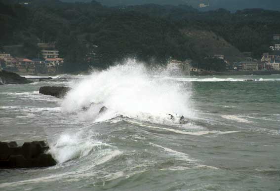 | 河津駅近くの海 荒れてます |