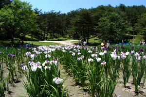 山形県長井市のアヤメ園。及び南陽市のバラ園。
