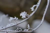 朝起きてみたら霧。そして放射冷却現象で木々などにはびっしりと霧氷がついていた。朝程々の時間におきだしたのでほんとうの霧氷を見に行くことは出来な かったが自宅の庭木にも霧氷がついていたのでD100を引っ張り出して撮ってみた。ちゃんと撮れるところに出かけていれば今日はまたとないチャンスだった のだ。残念!