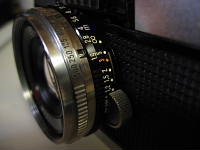 写真の中で左から順番にシャッター速度リング・絞りリング・ピントリング&ノブである。更にシャッター速度リングと絞りリングは一緒に回すことによってEV値を一定にしながら絞りと速度の組み合わせを変えることが出来る。実に合理的な作りではないか。