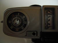 左はフィルムカウンター。72枚の表示があるのがハーフサイズカメラの証明である。「72」から減っていきフィルムの残存コマ数を表示するようになっている。ちなみに最初のコマ数は手動であわせる。右は露出計、セレンメーターである。7〜17のEV値で表示されている。
