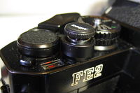 FE2には純正なので良く似合う。ブラッククロームのM7にもNikonの白い文字さえなければ純正といっても良いくらいである。僕のM6はシルバーク ロームなので唯一ちょっとアンバランスな感じがする。ましてNikonの文字入りでは。でも実用上は快適なのでおいおいよさそうな物をおりにふれて探す事 にしよう。
