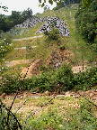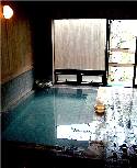 | 内風呂・・・あつい・・ | 露天からの風景 渓流の先は整地された山肌 |