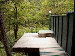 頑張って3人くらいしか入れないほどの小さな湯船だけれど、緑に包まれた気持ちの良いロケーションに置かれている。湯船の左にあるうちの1本はサクラの木で5月の中旬くらいだったら花見をしながら入れそうだ。