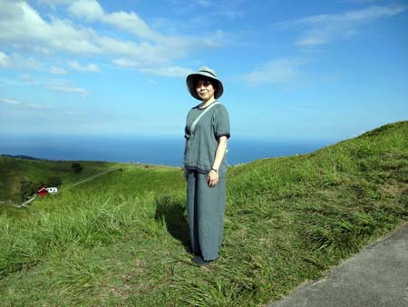 見晴らしが良くて景色が360度絶景。 山頂の噴火口跡は一周1キロあり、これを周回するのを「お鉢巡り」と言うらしい。景色を楽しみながら一周。途中から暑くて汗だくになったけど、景色はサイコーでした。 残念ながら富士山は雲に隠れて見えなかった。