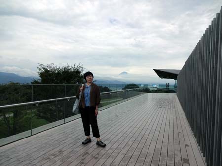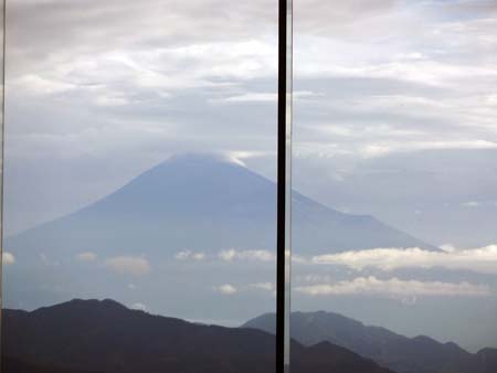 雲はあるけど、ホテルのロビーから富士山が見えた。ラッキー(^^♪ 今回の旅行で初めて見た富士山。