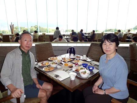 7:10からオールデイダイニング ザ・テラスにて、朝食バイキング。 どれも、おいしい。 窓の外に富士山が見えるのだが、残念ながら写ってない。