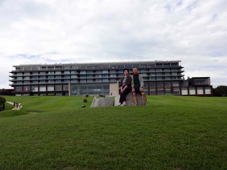 朝食後に、広々した前庭を散策。富士山は雲隠れ。