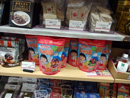 日本平ロープウェイのお土産屋さんで、ちびまるこちゃんのじゃり豆486円とワサビなめ茸660円を購入。