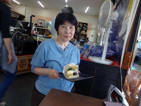 ランチ後、みほしるべに戻り、近くのお土産屋さんで、安倍川餅入り、抹茶ソースのバニラアイス最中、500円を食べた。美味しかった。