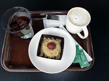 スタバでお茶 みんなの森ぎふメディアコスモス1階にあり、広場に面しているスタバ。まゆはアイスコーヒー380円。僕はカフェミスト(普通のカフェオレみたい)435円。手しぼり栗のモンブラン590円は美味しかった。