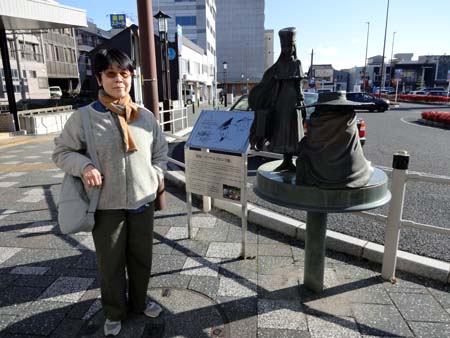 忍者市駅の前に鉄郎・メーテルブロンズ像。