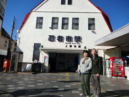 今日は伊賀の町を歩いて散策。 9:30 ホテルのすぐ近くにある忍者市駅。忍者市駅と言いつつ、軽井沢のペンション風な外観。