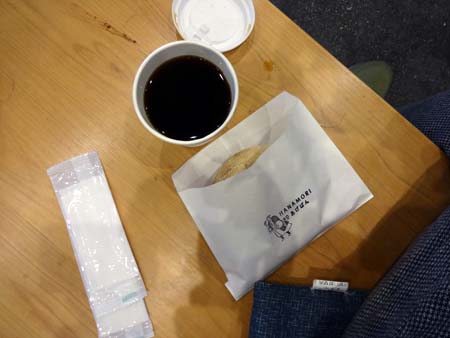 11:30 オープン時にテレビ番組で観て、寄りたかったお店のひとつ。 古民家松生邸を改装したこじゃれた、コーヒーとあげぱんの店、 イートインで休憩。芭蕉ブレンド440円、スパイスブレンド440円、あげぱん(きなこ)270円。あげぱんは大したことなかった。珈琲は美味しかった。 焼き物、お酒、花咲かりんなど伊賀のいろんな特産品を売っている。黒豆固焼き(固いやつ、2個入り)150円を購入。