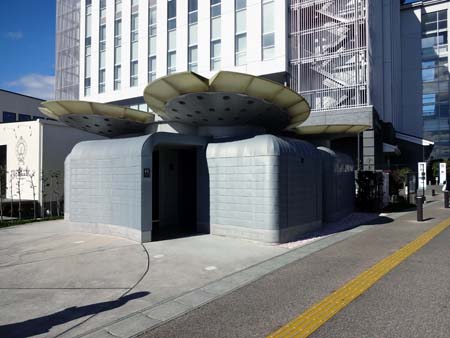 伊賀上野駅近く、前日夕食を食べたステーキ屋さんのビル(ハイトピア伊賀)の隣にある公衆トイレ。車で通った時、なんだろう、これ?って気になってたので寄ってみた。 TOTOがいろいろ無償提供しているらしい。 きれいだけど、忍者感は全くなく、残念無念。