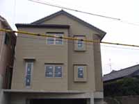 玄関ホールの天井。木の壁「もっくん」を塗るための下地が塗ってある。 壁はモイスのため、乾くのが速い。天井は石膏ボードのため、乾きが遅くて、斑に乾いている。