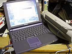 ▼もう「あしあと」の方にも書いちゃったからバラしちゃうけど、買っちゃいました、VAIO505。なんかROUさんが敵視してるけど、比較的廉価なマシンだと思うんだけどなぁ…。やはりキーが打ちやすいのがいいんだけど、大容量バッテリーがないとキーボードに傾斜がつかないのでちと使いにくいかも。まぁ、なんかモノ挟めばいいだけのことでもあるし。ま、詳しいことはおいおい…。しかしこれで「箱根でもCG作業が可能」ってことになったわけだ(謎)。