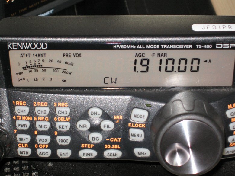 TS480とダミーロードを約1.5mの同軸で接続、暖