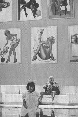 画家との新居にて。背景の絵は全てルルの肖像画。置くの老人がシゴルヒ。殆ど子供のルル