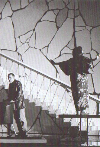 第2幕最後。戸惑うアルヴァ(左)と自由を満喫し、彼を誘惑するルル(右)。