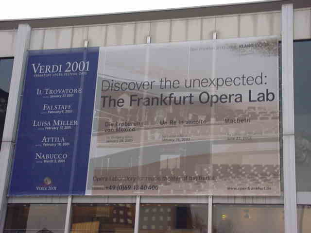 右はシャウシュピールハウスの壁に掲げられていた告知です。VERDIよりも大きく、リーム「メキシコ征服」、ベリオ「耳をすます王」、シャリーノ「マクベス」が予告されています。でも、上演回数は圧倒的に負けている...。
