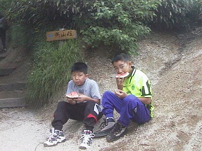 と中できゅうけいする広場があってスイカを売っていたので、スイカが食べられました。とってもおいしかったので白い所までたべてしまいました。