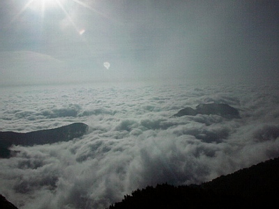次の朝、つばくろだけを登りました。すごくさむくて風もかなりありました。ふっとばされそうでこわかったです。ちょう上は、岩がごつごつして細長い所でした。ちょう上からは、雲海も見えました。すごくたくさんの雲がぼくより下に見えて見わたすかぎり雲の海でした。