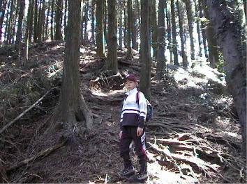 - <3>日本坂峠から花沢山山頂までは杉木立のなかの急登が続く。雨の日は非常に滑り易い。(注意)
