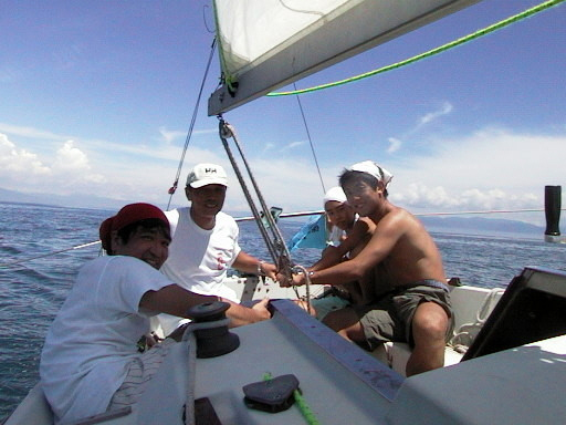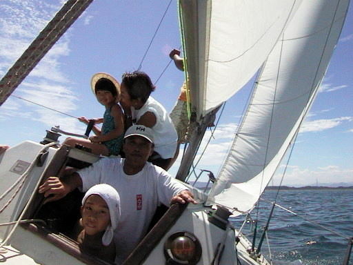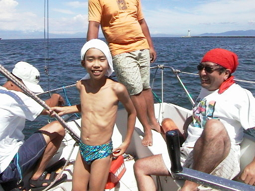 8月5日に、おとうさんのおともだちの、ひさおおじちゃんのヨットにのりました。ヨットに行くまでに、くろだいとクラゲとかを見ました。それからまんちょうでヨットにのりました。すこしかぜがふいただけでゆらゆらゆれました。でもぼくは、ぜんぜんこわくなかったよ。たのしいよ。ちょっと行って止まってやすんだよ。思ったよりつめたくなかったよ。でもそのときおとうさんがクラゲにさされたのであわててにげてヨットにのりました。ぼくはクラゲにさされたことがないからです。そこでセールをはりました。スピードは、はやかったよ。ヨットからイナダをたつみおじちゃんがつり上げました。アジよりおおきかったよ。かえるとちゅうにエスパルスドリームプラザが見えました。