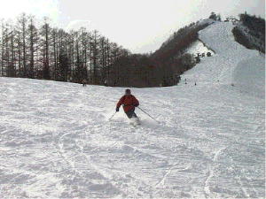 アルペンスキーは自信があるので、テレマークも簡単に滑ることが出来ると思っていました。また、最初に友達のテレマークの板を借りて滑った時は、簡単にパラレルターンが出来たので完全になめていました。そのため、板と靴をショップに買いに行った時、オーソドックスな板を選ばずに山スキーの短い板(MOROTTO180cm)にテレマークのビンディング(ボレー3ピンケーブル)をつけるといった変則な組み合わせをしてしまいました。靴(GARMONT TOURING)もツアー用で、この組み合わせは初心者にはかなり手強く、プルークボーゲンは出来るのですが,板が堅く短いので踏み込んでも板がしならず、丸い弧のターンは程遠い状態で、バランスがとれずに転んでばかりでちっとも面白くない状態が続きました。ただ、最初に友達の板を借りて滑った時のイメージがあまりにもよかったで、めげず、くじけず、ひたすら「こんなはずじゃないんだ」と頑張っていました。こんな状態が1シーズン続きました。