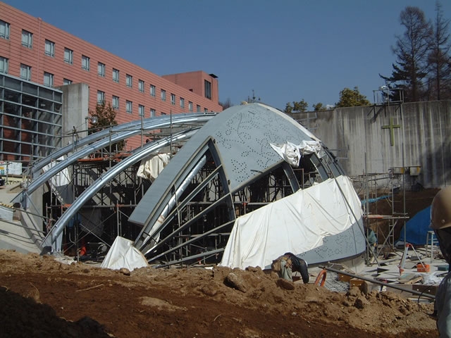 バイザー(工事時のベールの呼名)の溶接を行なった職人さん達は普段は船を造ってる方達で、「海が見えないと落ち着かない」と、言っていたのが印象的でした。造船の職人さんの腕前はやはりさすが。日本を支えた技術者達を目の当たりにした気分でした。