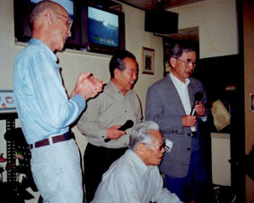 2004-6-12![]() 最近は隔月で開催されますが、毎回60代、70代、80代、の方たちの大変元気な歌声、熱唱に 圧倒されます。会場は東急大井町線の「尾山台」駅の至近にある「アロン」という名前のカラオケ・パブが ホームグランドになっています。 毎回「歌題」と称して歌唱する曲に「縛り」が設定されますが、 今回の「歌題」は「昨日、今日、明日」でした。私は「イエスタデイ」「明日にかける橋」などを 歌いました。