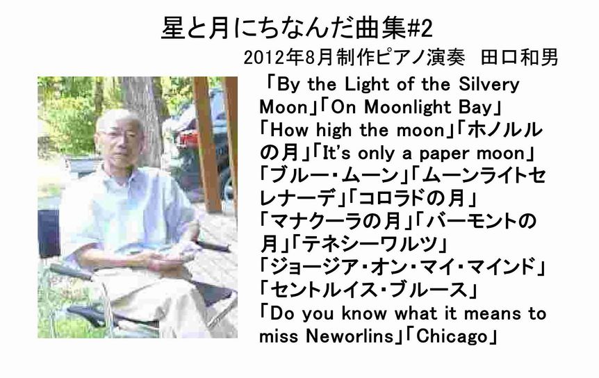 「By the Light of the Silvery Moon」「On Moonlight Bay」 「How high the moon」「ホノルルの月」「It's only a paper moon」 「ブルー・ムーン」「ムーンライトセレナーデ」「コロラドの月」 「マナクーラの月」「バーモントの月」「テネシーワルツ」 「ジョージア・オン・マイ・マインド」「セントルイス・ブルース」 「Do you know what it means to miss Neworlins」「Chicago」 |