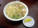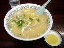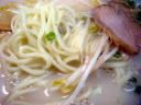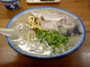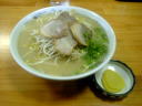 | スープはとんこつベースの薄い醤油味。うまみは調味料で調整、塩分は塩を使う。 オペレーションの基本形は、まず丼に塩、旨味調味料、醤油(にんにく醤油)、油の順で 入れ、そこにとんこつで出した白濁スープを入れる。味はライト系とんこつだが 薄いという感じもなくライトながらもしっかりと味わえる。 麺はちょっと太めの中加水麺で柔らかめに茹でている。 口当たりが良く、啜る感触がなめらかなので非常に食べやすい。 具はなんと言っても細めのモヤシ。麺より多いかも?という店もある。 そのせいでスープにモヤシの味と香りが付いてしまうことも。 チャーシューはほとんどがバラ肉でちょっとしょっぱめの味付けが多く見られる。 味の調整用に『にんにく醤油』が置いてあるのが宮崎の大きな特徴といっていいだろう。 醤油にニンニクが入っていたり、おろしにんにくに醤油を混ぜて練ったようなものまで 店によって様々である。 お新香が必ず付くのは、九州地方でよく見られる特徴だが、宮崎では9割以上 の確率で付いてくると思われる。 もう1つの特徴が『おにぎり』 これはほとんどのお店で見られた。 ゴマが振りかけてある程度の単純な三角おにぎりで、お客の大半が注文している。 ラーメン自体がしょっぱめの味で、しかもニンニク醤油を入れることで更に塩分が強く なるということもあり、シンプルなおにぎりがマッチするのでニーズが高いと思われる。 |