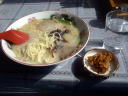 | 蛇足: お新香が付くという珍しいサービスが特徴なんですが、そもそもはラーメンが出来上がるまでの 間つなぎに サービスで出したのが始まりのようです。(こむらさきのおかみさんに聞きました) 和歌山のゆで卵や早寿司のようですね。こちらは有料ですが。。。 蛇足の蛇足: カツ丼なんかでもそうですが、お新香は必ず2切れですよね。宮崎でも全て2切れでした。 その理由ですが、1切れだと(ひときれ→人切れ)となり、3切れだと(みきれ→身切れ) となり 忌み嫌われているようです。そう言う意味では4もだめ。5切れだと多すぎ(笑) ということで一般的にお新香は2切れとなっているようです。 |