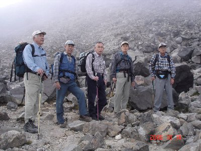 石黒さん達は、三斗小屋温泉に宿泊予定とのこと、また、道路が混み、バスを途中で降りられ歩かれた由お聞きする。再会を約し登り下りに分かれる。