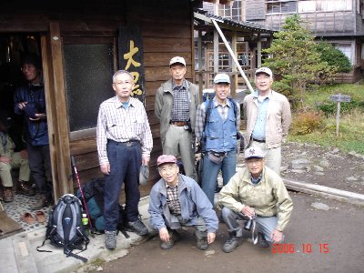 自重して、三本槍には登らず、湯治と紅葉見物に専念する田中純さんに見送られ、5名は