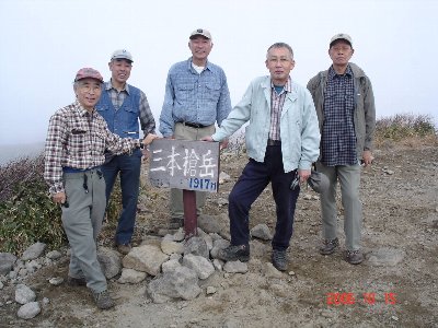 三本槍岳はハイマツに覆われた雄大な山容であり、名前の由来が気懸かりになり、記念写真では、杖を3本立てて撮りました。(家に帰って改めてガイドブックを読み返すと載っておりました。山頂は、会津、白河、黒羽 三藩の領界で、領地確認のため、毎年5月5日に各藩の槍を立てたことに由来とのこと)