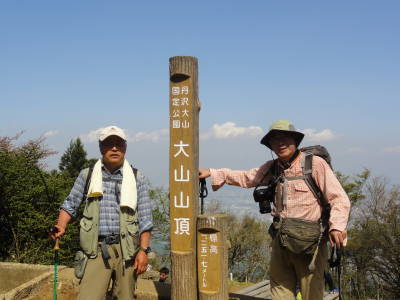 護摩屋敷の水を補給し、大山に向かう。大山頂上でコーラで乾杯! 記念写真のあと下社まで下る。今日の歩行は約35,000歩でした。お疲れ様でした。