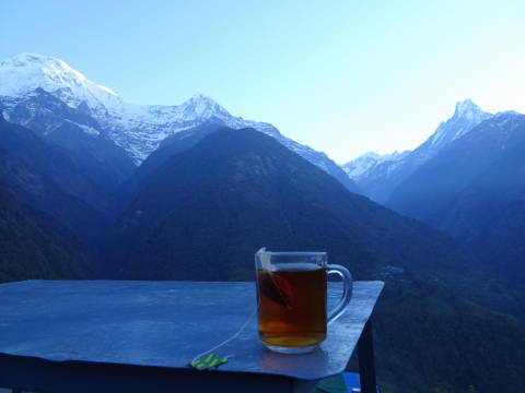MBCのロッジからもアンナプルナ1、マチャプチャレ、ガンガプルナなどが鮮やかに見えていた。
