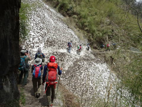 10:30 オーストリアンキャンプ(2,060m)に到着。アンナプルナ連峰の大パノラマが広がる筈であるが生憎視界不良。