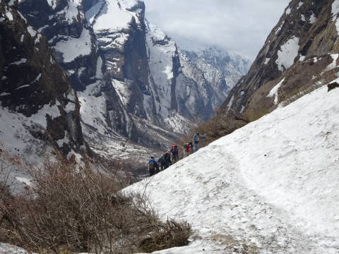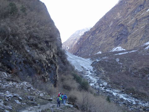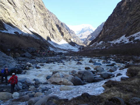 9:00 今日は最後の日である。幸い天候も良く小屋からもアンナプルナ1が良く見えるようになった。ABCを目指して出発する。