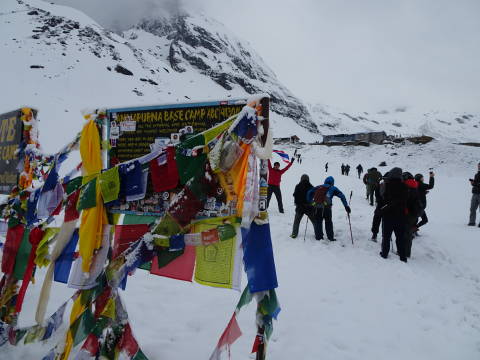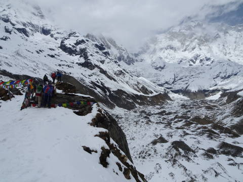 展望台まで登り写真を撮ったり、氷河を覗いたり。しかしアンナプルナ1は見えない。