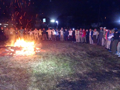 - 開式:はじめの言葉(22期石原)・合唱「遠き山に日は落ちて」・点火