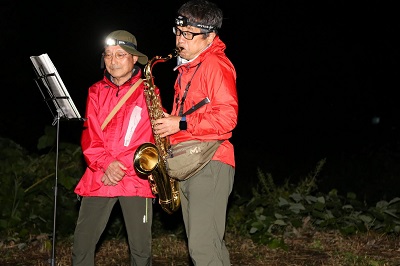●ファイア 司会/20期桐野,サックス伴奏/18期芝田,ファイアマスター/22期石原